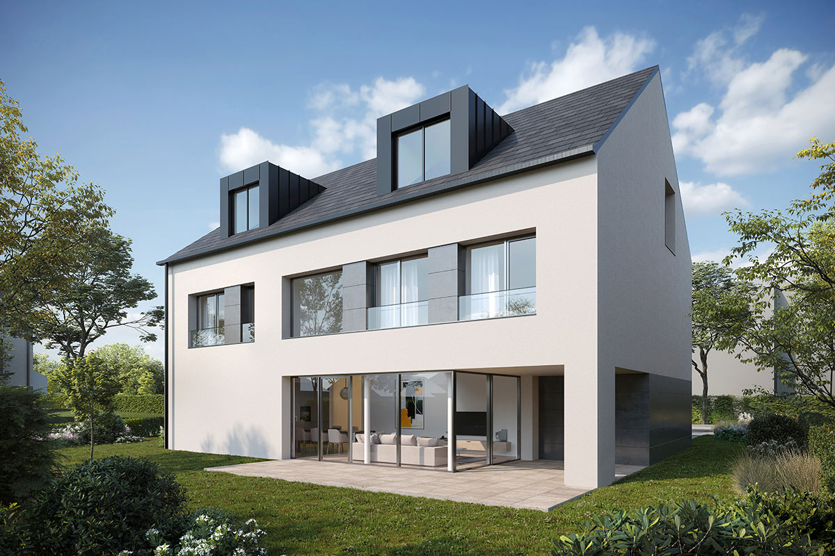 Construction de 25 maisons d’architecte vastes et contemporaines dans le nouveau lotissement Osmosis à Fingig (Kaerjeng) dans la commune de Bascharage.